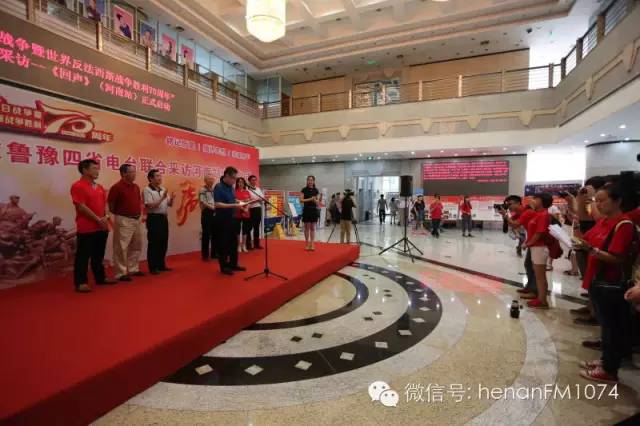 8月11日上午九點,由河南農(nóng)村廣播、山西農(nóng)村廣播、河北農(nóng)民廣播、山東鄉(xiāng)村廣播于2015年7月至9月展開“追隨先輩足跡,唱響時代凱歌”——紀念抗日戰(zhàn)爭暨世界反法西斯戰(zhàn)爭勝利70周年晉冀魯豫記者大型聯(lián)合采訪活動《回聲》在河南人民廣播電臺啟動。