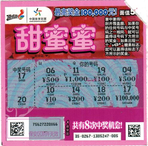 彩民王先生是一位運(yùn)動達(dá)人,平時(shí)喜歡夜跑鍛煉身體,連續(xù)兩個星期的陰雨天終于放晴,王先生非常興奮的去夜跑,途中看到一家體育彩票店干凈整潔,明亮熱鬧。王先生發(fā)現(xiàn)很多彩民圍在桌子旁刮即開彩票,便跟老板咨詢,當(dāng)了解到即開彩票能即刮、即兌、當(dāng)場開獎,就報(bào)著試試手氣的想法選了面值5元的“甜蜜蜜”彩票。滿滿的愛心,粉紅的主色調(diào)看上去很溫暖很舒服。刮著第一張的覆蓋面的最后一個號碼,王先生發(fā)現(xiàn)中獎號碼區(qū)的“17”和你的號碼區(qū)的“17”完全一致,再刮開金額100000元,哇!10萬元頭獎呈現(xiàn)眼前!一邊兌獎王先生一邊激動的說“幸運(yùn)中大獎,很開心!熱愛體育運(yùn)動,支持體育彩票!”