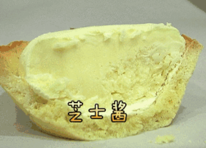 乍一看除了頂部有點(diǎn)酥其它并無特別,掰開的一瞬間流淌出的芝士,連香香也是第一次見到。這奧秘究竟在哪里?