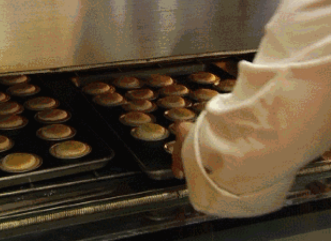原來這款芝士蛋撻里面是芝士醬,外面卻是曲奇,所以吃起來口感會(huì)不一樣,外脆內(nèi)糯的感覺,上面刷一層蛋黃液增加口感,推進(jìn)烤箱靜靜等待。