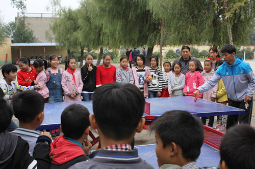 水磨河小學(xué)賀國(guó)營(yíng)校長(zhǎng)代表校方對(duì)河南省體育彩票管理中心表示感謝,他激動(dòng)的告訴大家,河南省體育彩票管理中心捐贈(zèng)的器材極大的補(bǔ)充了學(xué)校的體育器材數(shù)量,豐富了體育教學(xué)課堂。水磨河小學(xué)的體育老師資源不足,這次省體彩中心不僅送來(lái)了體育器材,還為孩子們帶來(lái)了“體育課堂”,他代表學(xué)校和孩子們對(duì)體彩中心表示感謝!捐贈(zèng)儀式過(guò)后,6位專業(yè)體育老師對(duì)2個(gè)班級(jí)的同學(xué)開(kāi)展了足球課和乒乓球課。當(dāng)足球、乒乓球等體育器材分發(fā)到孩子們的手中,一邊是熱鬧的乒乓球比賽,一邊一群男孩子在暢快的踢著足球,整個(gè)操場(chǎng)成為歡樂(lè)的海洋。