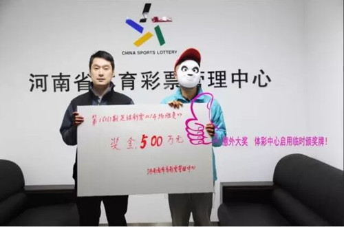 2016年10月24日上午,河南體彩中心來了一位“神人”,手持一張2元單式投注的足彩14場(chǎng)勝負(fù)游戲彩票,聲稱要領(lǐng)500萬大獎(jiǎng)!