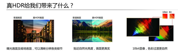 MU9600攜帶了許多高端技術,包括3D顯示、曲面屏幕等,但要說最值得夸耀的無疑是現在最熱門的HDR技術。2015末至今HDR已經成為許多智能電視的標配技術,從效果上來說HDR能讓畫面的整體均勻性更好,因此HDR技術也被譽為是繼4K后最重要的畫質技術。