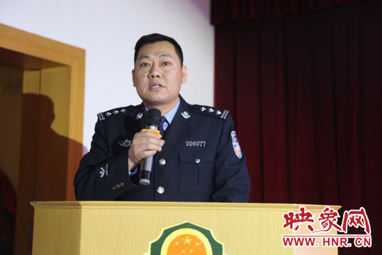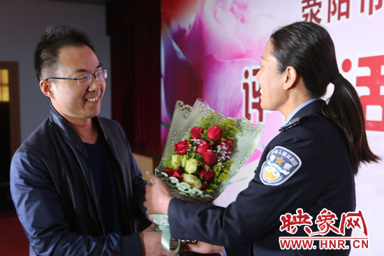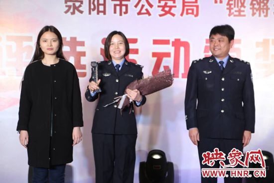 滎陽市公安局政委張毅凡給獲獎女警頒獎