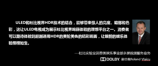 海信天璣系列ULED產(chǎn)品受益于背光技術(shù)升級(jí),擁有更高的峰值亮度和對(duì)比度,對(duì)HDR畫質(zhì)表現(xiàn)更為驚艷。海信最新發(fā)布的這款天璣系列ULED畫質(zhì)旗艦產(chǎn)品同時(shí)獲得了杜比和HDR10兩大國際HDR標(biāo)準(zhǔn)認(rèn)證。杜比實(shí)驗(yàn)室多屏視頻服務(wù)業(yè)務(wù)副總裁Rland Vlaicu對(duì)海信天璣系列ULED新品也給予了極高評(píng)價(jià):ULED和杜比HDR技術(shù)的結(jié)合,能夠帶來驚人的亮度、暗部和色彩,消費(fèi)者可以體驗(yàn)到超越通用HDR的美輪美奐的精彩畫面。