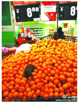 昨日下午兩點21分,新浪微博大V用戶“渝小新”發(fā)布微博,聲稱重慶協(xié)信星光時代廣場的華潤萬家超市的橘子里居然有活耗子,并配發(fā)了事發(fā)時的圖片。