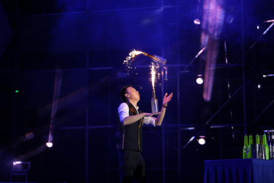 所謂壓軸狂歡,是臺下觀眾的飽滿熱情—花式調酒更美味,臺上臺下齊歡樂,調酒師現場表演花式調酒,臺下觀眾有眼福更有口福。