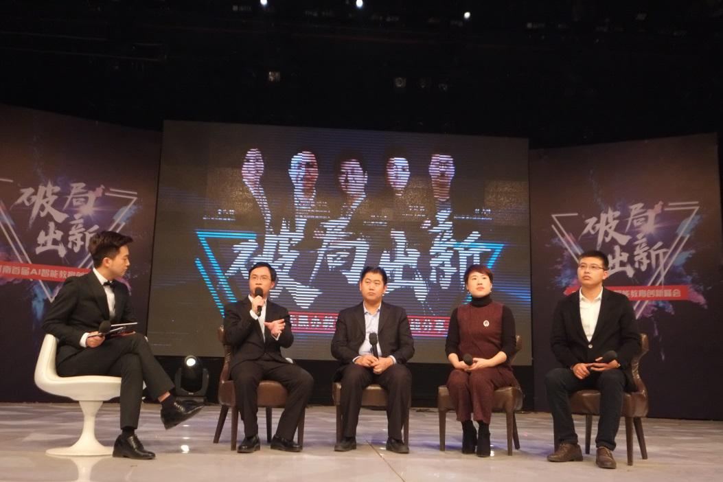最后,美克創(chuàng)客創(chuàng)始人韓可蘇先生、 大山教育集團董事長張紅軍先生、現(xiàn)代教育集團運營總監(jiān)董文靜女士、鄭州星源外國語學校校辦副主任張高峰先生圍繞著《AI時代民辦教育智能創(chuàng)新實戰(zhàn)經驗分享》的話題進行了圓桌論壇。四位嘉賓分別從社會熱點到教育理念展開實戰(zhàn)分享,充分展望未來AI技術與教育結合的創(chuàng)新方向。