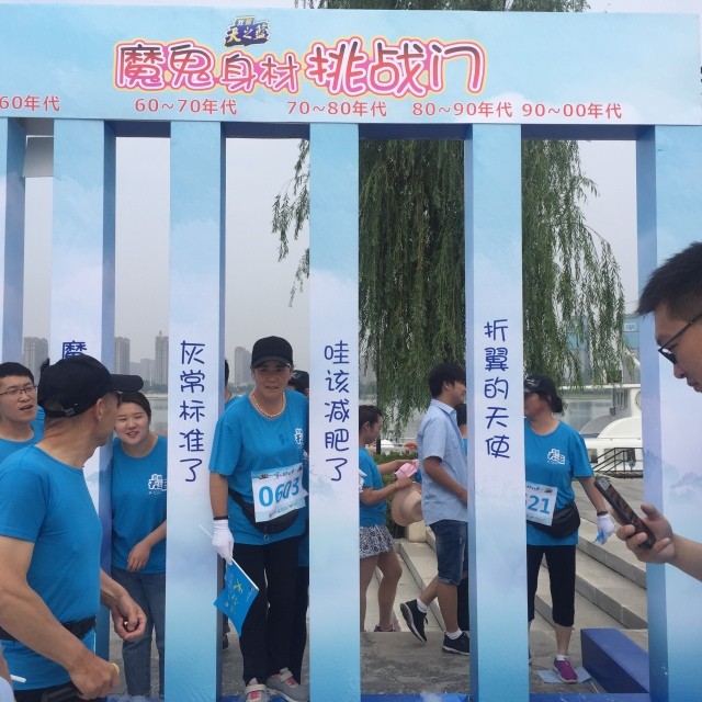 開封站現(xiàn)場互動區(qū)充滿歡聲笑語,天之藍玩偶與人群進行親密互動,炒熱氣氛;同時十秒挑戰(zhàn)和魔鬼身材挑戰(zhàn)門也贏得了現(xiàn)場群眾的踴躍參與。