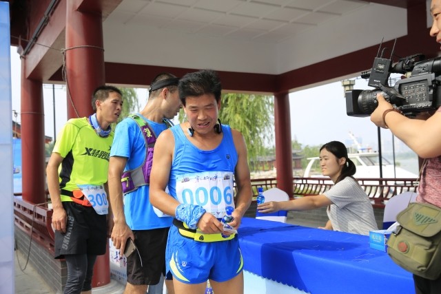 跑完全程的跑者,從工作人員手中接過屬于自己的獎牌