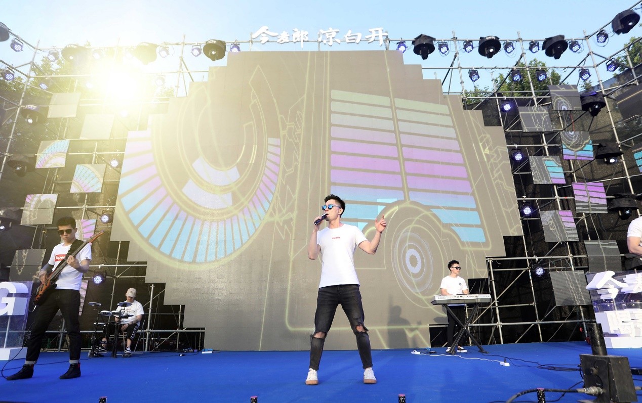 堪比電音節(jié)的活動現(xiàn)場,越夜越HIGH,全民運動與酷炫表演緊密聯(lián)合,開啟今麥郎涼白開激情之夜。