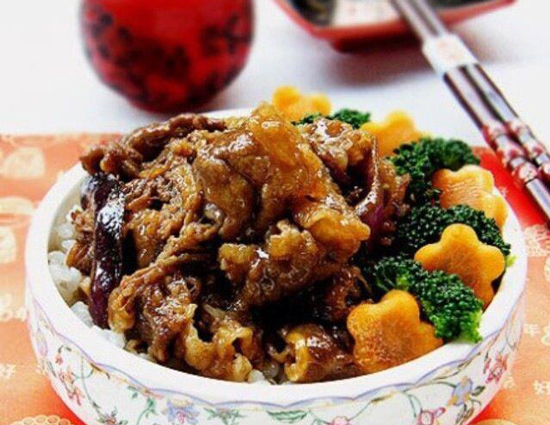 3.等鍋內(nèi)的照燒醬燒開(kāi)后,放入肥牛片;