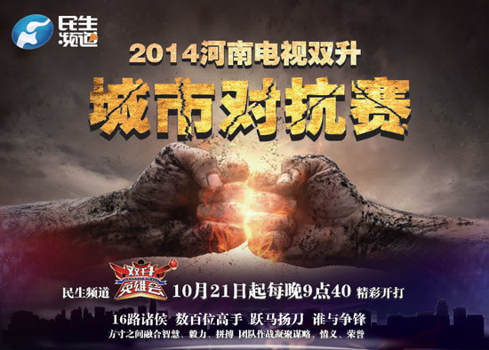 由河南電視臺(tái)民生頻道主辦的“2014河南省電視雙升城市對(duì)抗賽競(jìng)賽”將于2014年10月21日拉開帷幕。