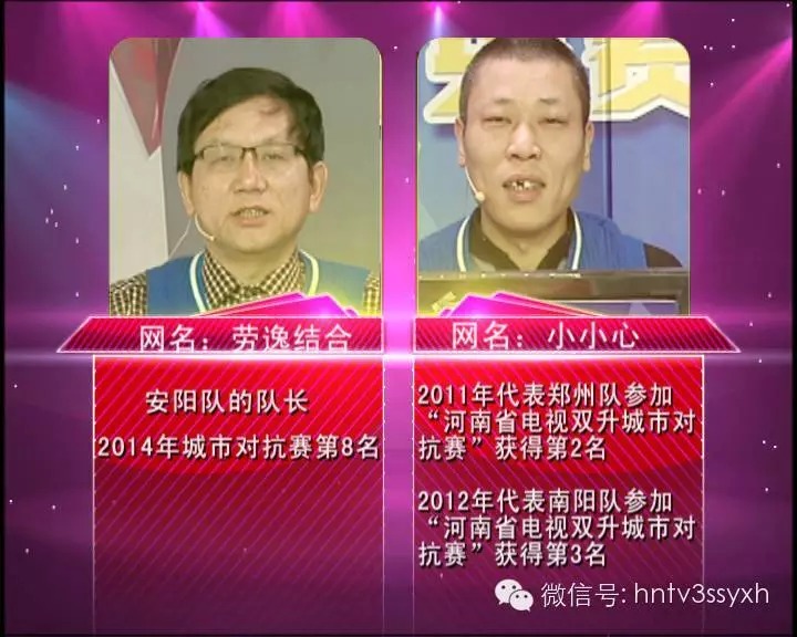 從今天開始,河南全省大部分地區(qū)正在逐步升溫,大家可以適時(shí)脫去厚重的棉衣,換上輕便的外套盡情沐浴春風(fēng)。伴隨著漸漸暖和的天氣,我們的精英賽事也在如火如荼的進(jìn)行當(dāng)中。 今晚將要進(jìn)行的是下半?yún)^(qū)第2輪敗者組的第4場(chǎng)比賽,是由焦作精英“彤輝”和“驚雷”對(duì)陣安陽精英“勞逸結(jié)合”和“小小心”。“勞逸結(jié)合”和“小小心”是初次搭檔,“勞逸結(jié)合”是安陽隊(duì)的隊(duì)長(zhǎng),連續(xù)三年帶領(lǐng)安陽隊(duì)選手參加城市對(duì)抗賽,2014年城市對(duì)抗賽獲得第8名;“小小心”曾代表鄭州隊(duì)參加2011年“河南省電視雙升城市對(duì)抗賽”獲得第2名,2012年代表南陽隊(duì)參加“河南省電視雙升城市對(duì)抗賽”獲得第3名。
