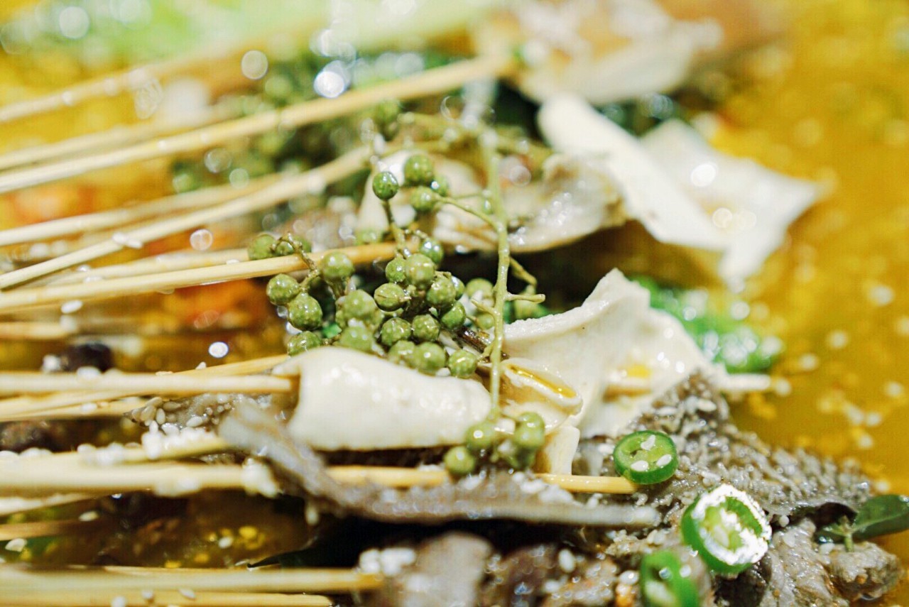 重慶喜辣更江湖,成都重麻更市井。而椒麻鍋底的冷鍋串,就是成都特色。藤椒芝麻和小米辣的放入,讓鍋底有了香麻的口感。青白兩色的搭配,看起來也特別清爽。