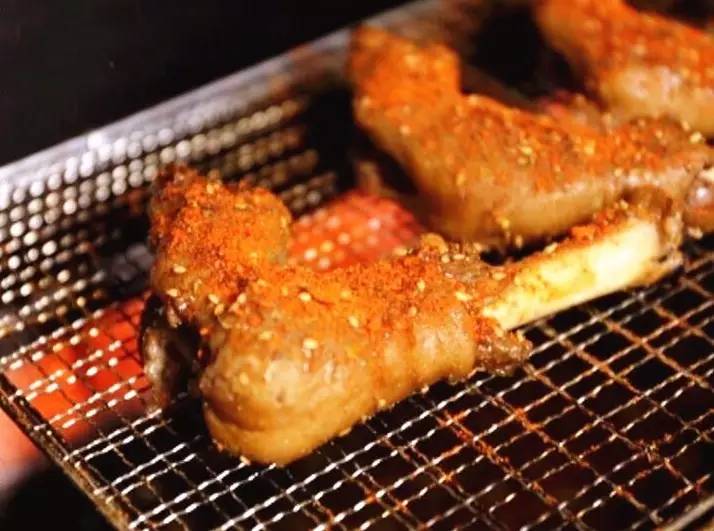 覺得不過癮?再來個(gè)烤羊蹄應(yīng)該是個(gè)不錯(cuò)的選擇。洗凈的羊蹄先放入鹵湯中鹵制,讓大料香味充分浸潤到肉里,再上爐烤制,表面還要撒上燒烤料和紅紅的辣椒面。