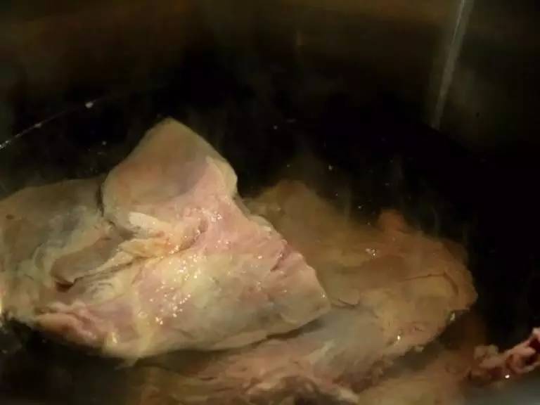 湯鍋中加入冷水,將骨頭下入鍋內(nèi),等水快燒開時撇去浮沫,再下入鹽、還有由八角、茴香等十多種大料組成的秘制料粉。