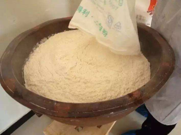 固始生態(tài)環(huán)境優(yōu)良,出產(chǎn)的小麥面粉清香味很足但筋度不夠,搭配上高筋粉和鹽水來和面,而溫度、濕度和水分的比例也很有講究。別看這面盆不起眼,卻已經(jīng)用了七八十年,稱得上是傳家寶了。