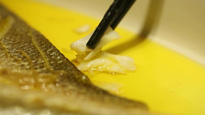而它的味道可比賣(mài)相豐富太多了,一端上桌就能聞到淡淡的油香,夾一塊兒蒜瓣魚(yú)肉,入口就嘗到了濃濃的花椒香,魚(yú)肉彈潤(rùn)細(xì)膩料味十足??床坏揭涣B榻?,酥酥麻麻的感覺(jué)卻在舌尖上迅速蔓延開(kāi)來(lái),沒(méi)想到你是這樣的大黃魚(yú)……