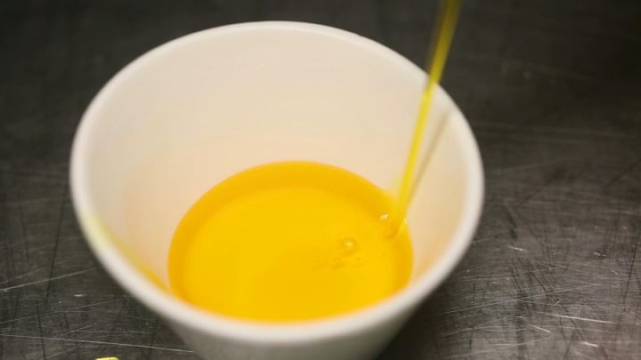 這種黃金油是用南瓜做底,還加入了花椒油等調(diào)料。整體清澈透明,聞起來(lái)有一股甜甜的香味,均勻澆在大黃魚(yú)身上。上爐蒸制的時(shí)候,料油在高溫作用下充分滲透進(jìn)了魚(yú)肉里,不僅可以給魚(yú)肉調(diào)味增鮮,還能提升整道菜的顏值。