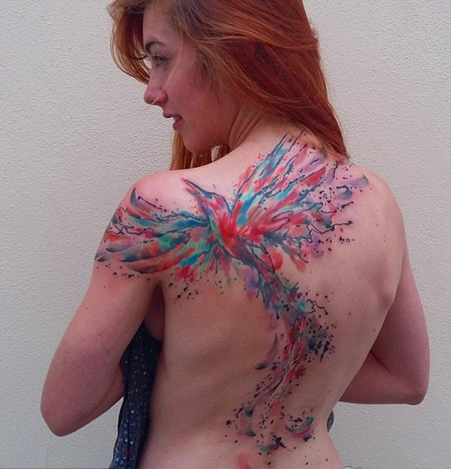 據(jù)英國《每日郵報》9月20日報道,捷克藝術家翁德雷(Ondrej Konupcik)運用水彩畫中的描邊、濺潑手法為顧客紋身。目前,這樣的水彩紋身已在各種紋身愛好者身上流行開來。為了保證工作質量,翁德雷每天只見一名客戶,而現(xiàn)在的預約已經(jīng)排到了兩年以后。