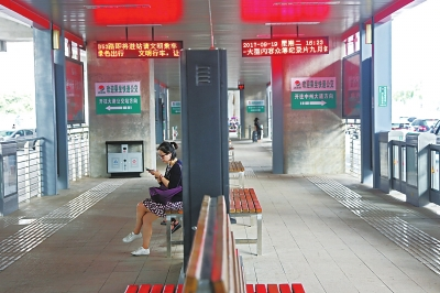 不過,與以往輝煌時候相比,如今BRT客流量可算是銳減。昨日中午,記者沿著農(nóng)業(yè)路BRT沿線查看,除了農(nóng)業(yè)路花園路站內(nèi)人數(shù)稍多一些之外,其他站點平均不足10個人。與新建的寬敞明亮的站臺相比,乘客頗為冷清(如圖)。