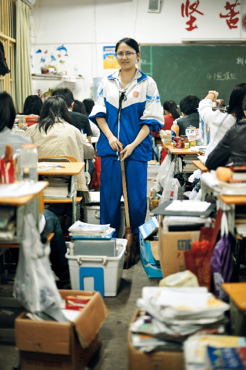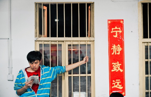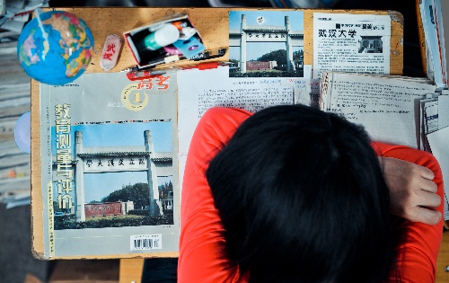 5月25日,復(fù)讀學(xué)校內(nèi),學(xué)生李昱在休息。他在5月1日的日記里寫道,“今天距高考37天了,沒有雜志,沒有IPhone,沒有ITouch,沒有任何分心的東西,只有一顆上大學(xué)的心?!?/p>